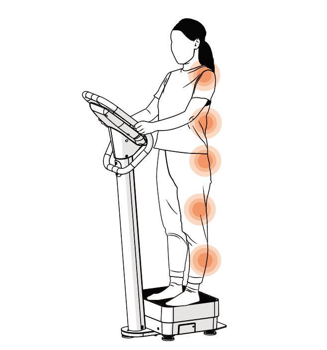 音波振動を利用し、短時間で高い効果を得ることができます。非常に安定した垂直運動を提供するため、関節や靭帯、腱などに無理を与えずに、適切な運動ができます。運動障害がある方やご高齢の方まで多くの方にご利用いただけます。